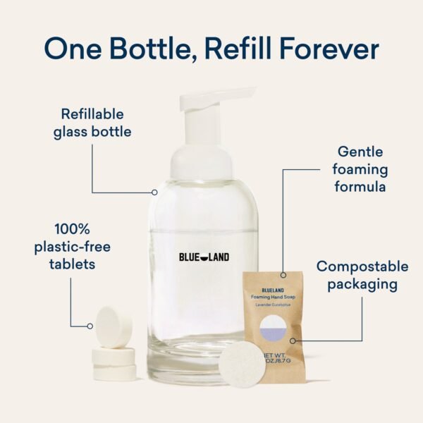Two bottles to refill forever. Just fill your Forever Bottles (reusable glass hand soap dispensers) with water. drop in a 100% plastic-free tablet and and enjoy rich. foaming goodness at your fingertips! Consider them your sink’s new BFFs (literally forever).