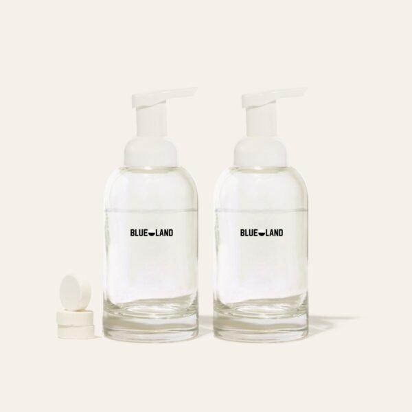 Hand soap set includes 2 Forever bottles and your choice of 5 or 10 plastic-free hand soap tablets. Each tablet makes one full bottle of Foaming Hand Soap.